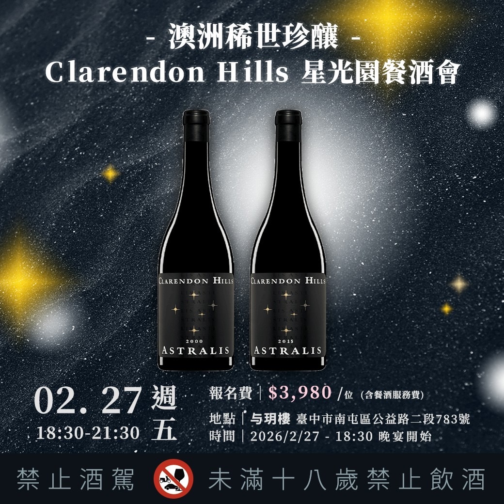 Clarendon Hills酒莊旗艦酒「ASTRALIS星光園」,自1996年一戰成名後,至今30年來都與Penfolds Grange、Henschke Hill of Grace並稱澳洲三大名酒。